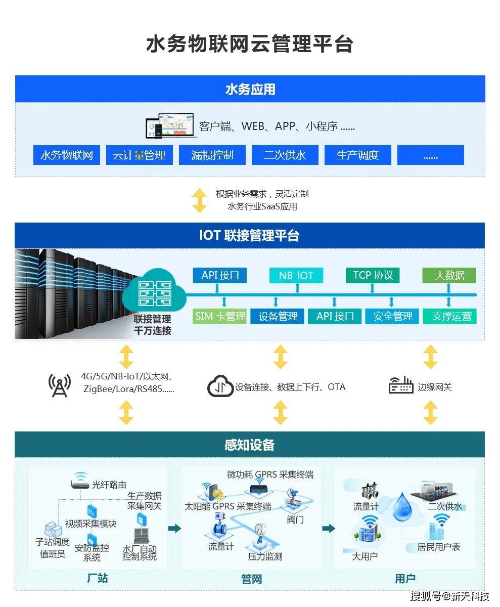 新天科技水务物联网渠道具有数据搜集、传输、存储和剖析功用,为水务公司能够供给“感-传-知-用”一站式全体解决计划。