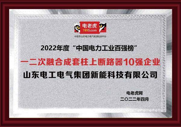 原标题:恭喜!山东电工新能科技荣获“一二次交融成套柱上断路器10强企业”
