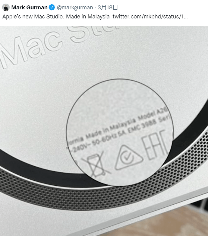 郭明錤:苹果 Mac Studio 虽然标有「马来西亚制造」,但最终组装仍在中国